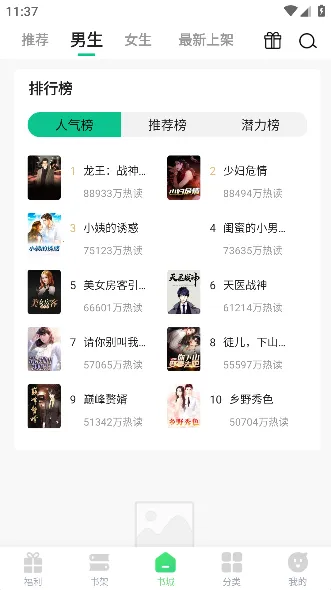 1. 平台提供多种阅读资源,热门小说一应俱全。
