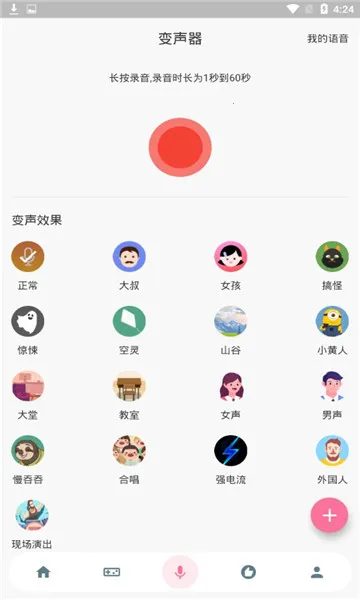 2. 一键变声,支持录制语音,自定义模式可秒变多种声音形象。