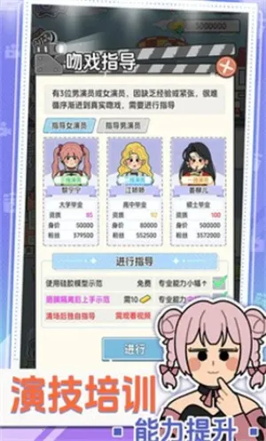2. 演员个性养成系统,通过多维度培训提升演员能力,维护好感度以防罢演或被挖角。