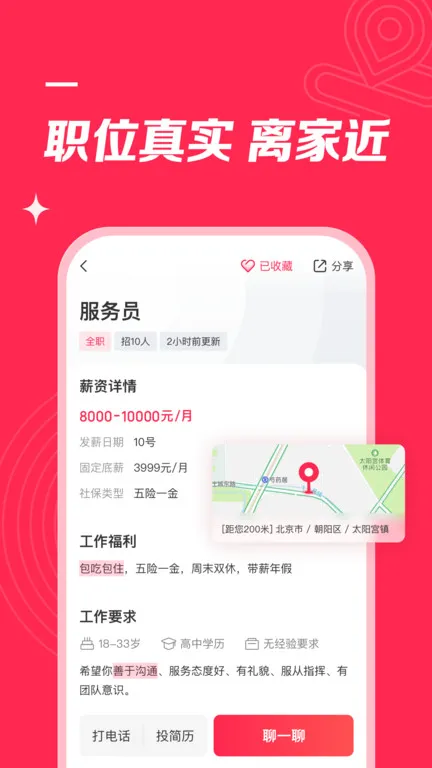 2、求职高效:与主管在线聊,聊爽就上班,一小时能入职。