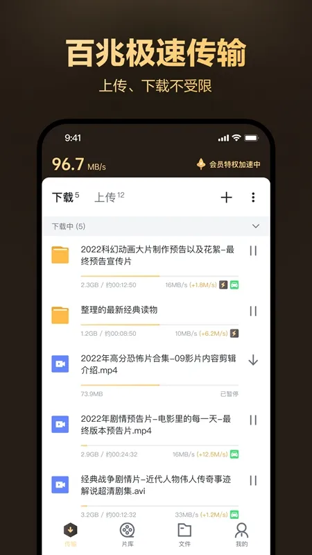 3、极速传输:百兆极速传输,上传下载不受限,高速取回文件。