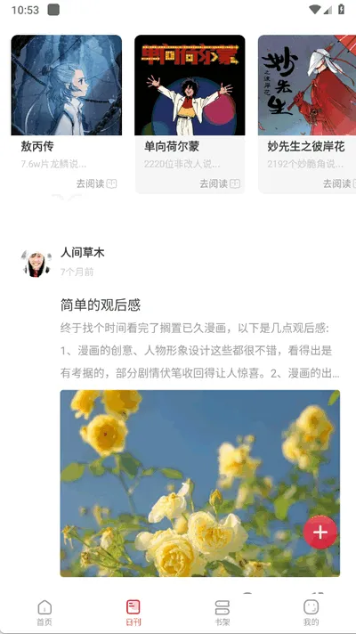 2、阅读体验绝佳,支持多种阅读模式随心切换,还有便捷阅读手势,能高效定位目标页面。每日有封面推荐,更新页以卡片展示当日更新。
