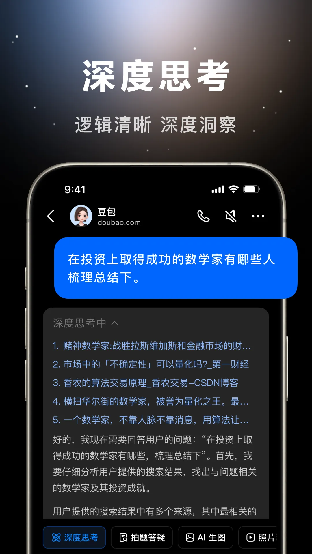 3、能力出色:深度思考,逻辑缜密,回答细致全面,还有精准拍照识图功能。