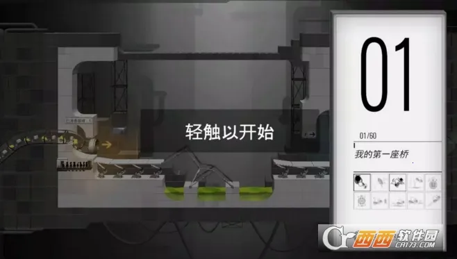 游戏玩法简单易上手。进入游戏后,先在主界面点击开始游戏,进入关卡选择界面,比如选择“01 - 我的第一座桥”关卡,点击开始就能进入游戏关卡。然后根据场景需求,利用下方建筑工具搭建桥梁等结构。
