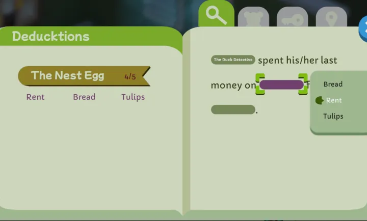 鸭鸭侦探(冒险解谜游戏)亮点众多。道具组合技巧超有趣,如用放大镜查微观线索,面包炸弹制造混乱获信息,鸭舌帽伪装潜入禁区,触发隐藏剧情。穿插鸭子赛跑、气球爆破等喜剧猜谜挑战,成功猜谜能缩短推理时间,失败有别样动画。还建有8名犯罪嫌疑人数据库,记录动机与不在场证明,通过证言对照锁定真凶。这些独特设计,让玩家在解谜中尽享乐趣,体验非凡的冒险解谜之旅。