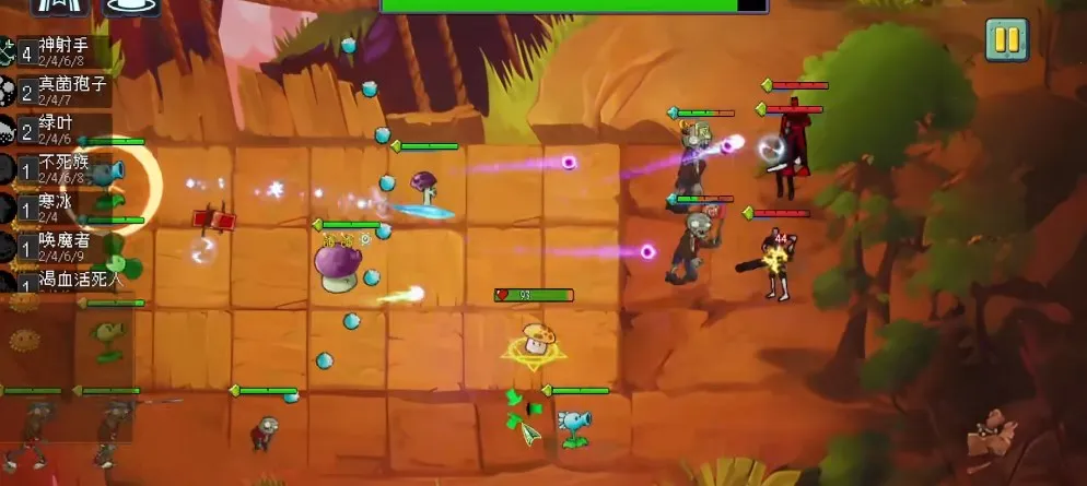 4. 众多可操控棋子,包含60种植物与僵尸棋子,每个都有独特设定与羁绊。