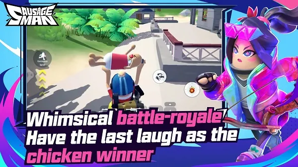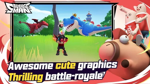 2. **丰富玩法体验**:玩法和国服相似,融入多人联机对战与夺冠吃鸡玩法,扮演可爱香肠人在高强度战斗环境中战斗,还有超多疯狂战斗可选。