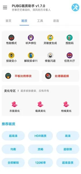 PUBG画质助手安卓版是专为绝地求生玩家打造的优化工具,能提升视觉与听觉体验。可灵活调整画质帧率,支持多处理器,有多种免费优化方案,适配多版本,操作简单,助玩家畅享优质游戏。
