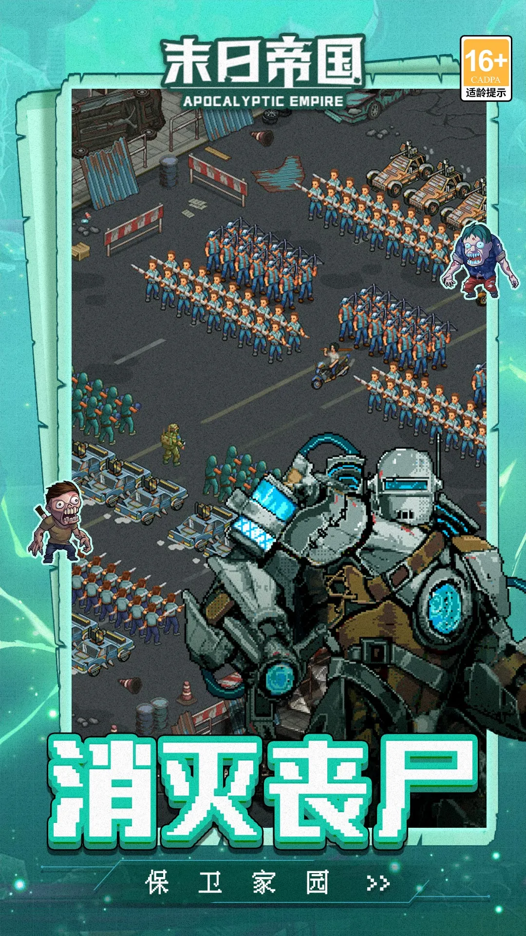 末日帝国最新手机版是废土风格的策略手游。在未知病毒肆虐的末世,玩家作为市长要组建幸存者小队,经营家园、强化装备。游戏有多样防御塔、刺激战斗,还能选阵营对抗,融合多种玩法,带来丰富末日体验 。
