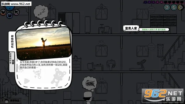 3、简单的黑白画表现手法,带来纯粹简单的视觉享受。同时,脑洞极大的世界观设定,极易让玩家沉溺其中,感受独特的人生模拟体验 。