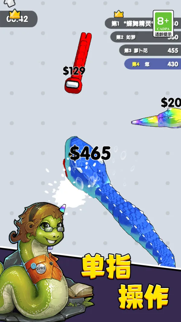 1、蛇身高度自定义:贪吃蛇无敌吞噬战的蛇身皮肤支持高度自定义,稀有外观造型独特,还能小幅提升移动速度等属性,让你在游戏中脱颖而出。