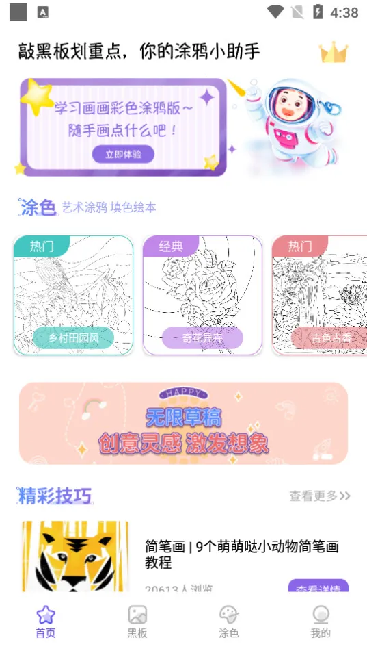2. 操作简单,指尖轻点即可着色,还有丰富的艺术涂鸦,方便随时涂鸦。
