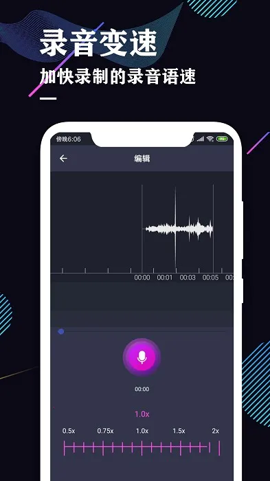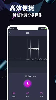 2. **操作便捷**:简洁操作,自定义导入音频,支持手机端合并和截取。变速已录制音频语速,自由调节播放时间和速度,想怎么录就怎么录,想怎么听就怎么听。