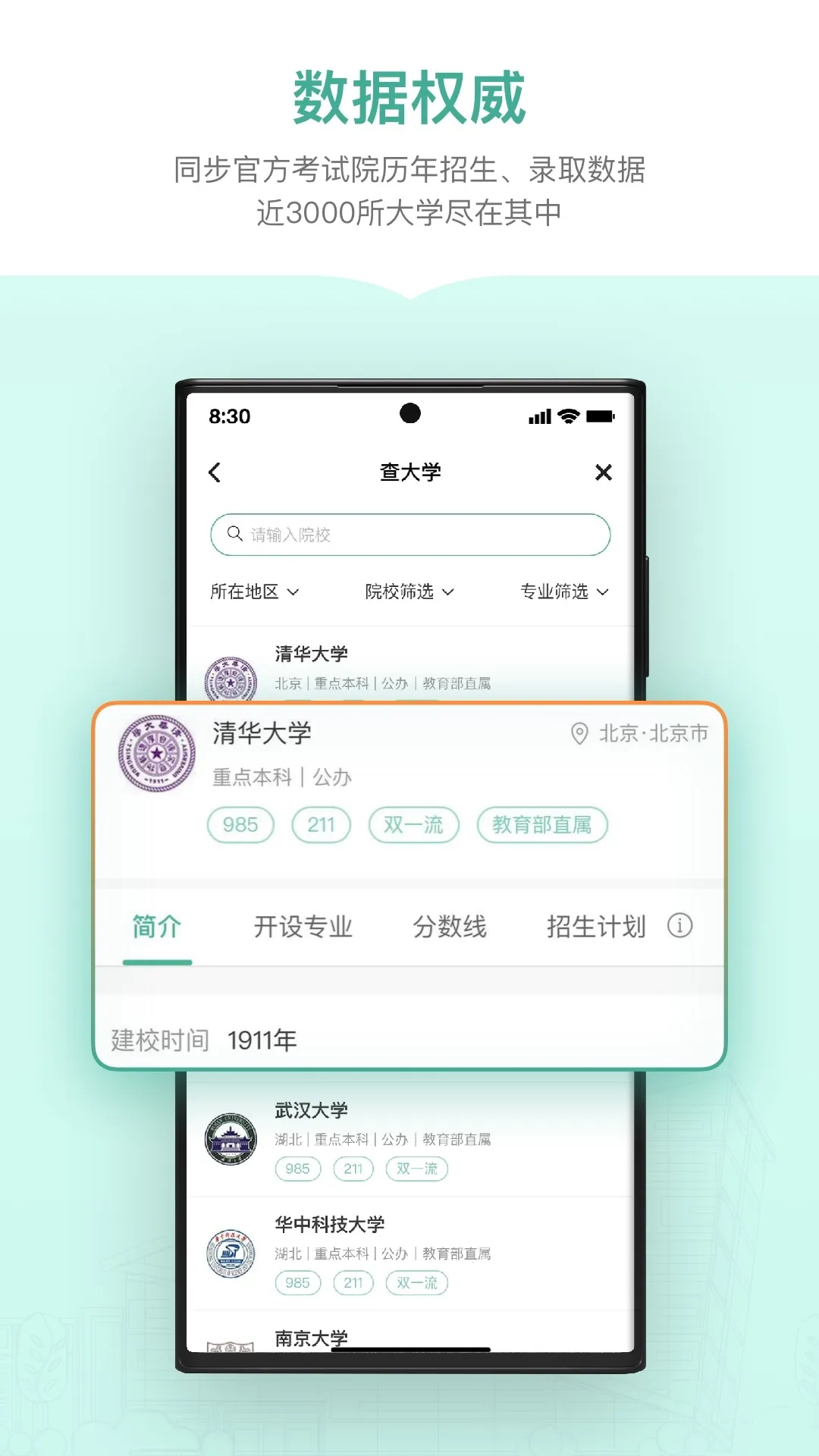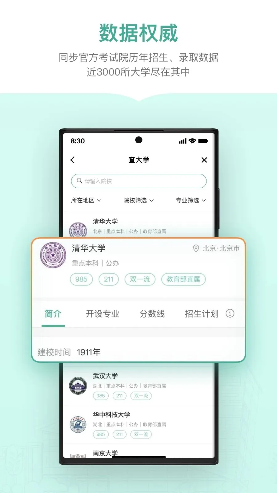1. 数据权威,同步考试院历年招生录取数据,覆盖近3000所大学,来源可靠。
