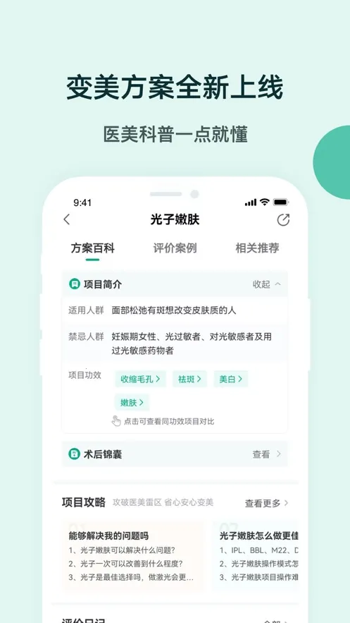 4. 提供医美指南、医美项目方案对比、医美经验干货等,为变美提供更多参考。
