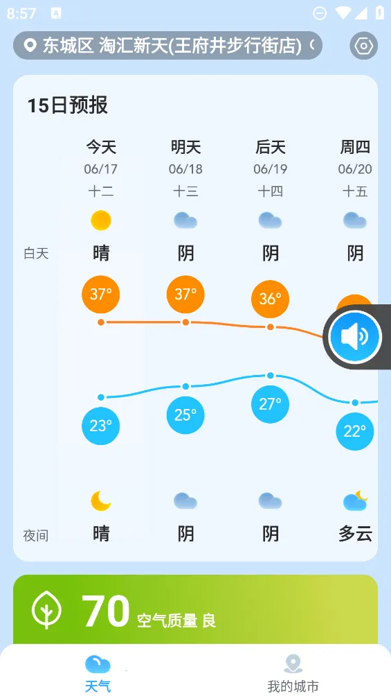 1. 自动获取当前定位,支持手动添加多个常驻城市,满足多样化场景需求。