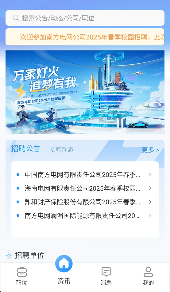 南网微招聘是南方电网官方推出的招聘平台,有超多职位,信息实时更新。能精准匹配,支持在线沟通、简历投递等。界面简洁,全流程数字化,还有行业大数据支持,保障求职者高效完成求职全流程。