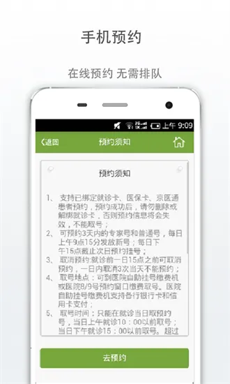 1. 手机预约:提供全院各科室专家门诊普通门诊预约,无需排队,简化就医流程。