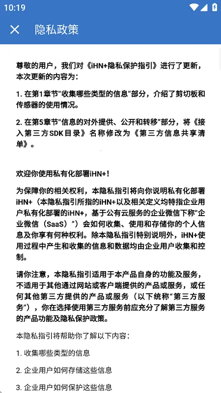 中国华能iHN是一款超棒的软件,专为华能集团员工打造。它就像一个一站式办公和沟通的小助手,能解决大家日常工作中的不少难题。这里有详细的企业架构,找同事超方便。它支持内部交流,查看待办任务也很轻松,能及时处理工作。集成了多款效率工具和办公应用,日程功能可以高效组织会议、查看同事闲忙、管理公共日历,还能邀请他人参与日程。文档继承腾讯文档编辑能力,可多人共同编辑。会议延续腾讯会议体验,还有屏幕共享等功能。OA应用有打卡审批等。微盘提供文件共享空间,方便共享工作资料与相册。沟通体验超熟悉,和微信一样易用,多平台消息同步,能看对方已读未读状态。全方位连接微信客户,管理方便,还有群发助手等工具。总之,用它能大大提高日常工作效率,让工作更轻松。