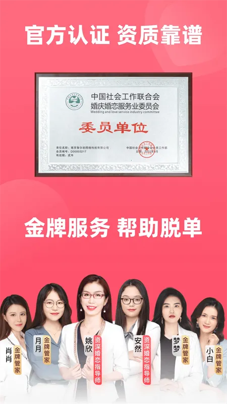 2. 真实靠谱,经国家认证,具有社会诚信专业水准,家长放心给儿女找对象。