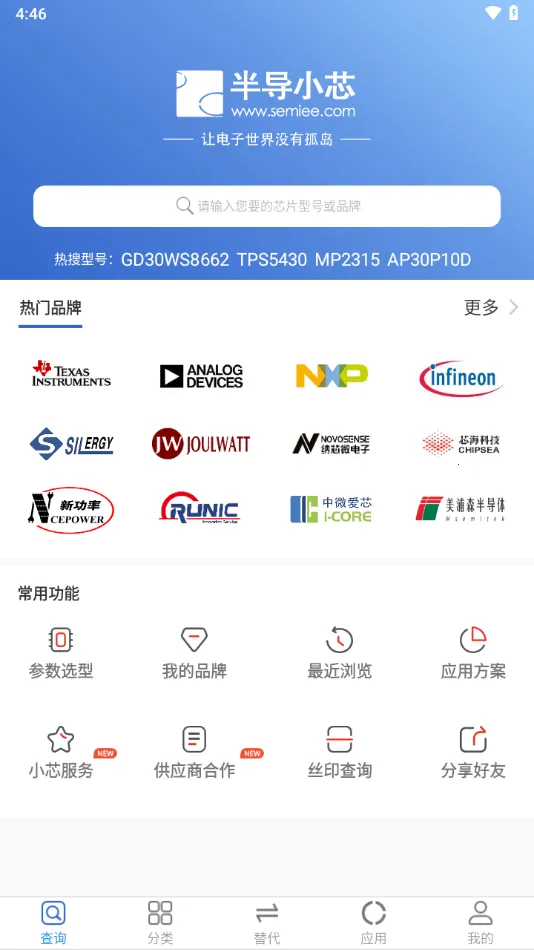 2. 品牌查找便捷:按品牌信息查找,掌握更多芯片信息。