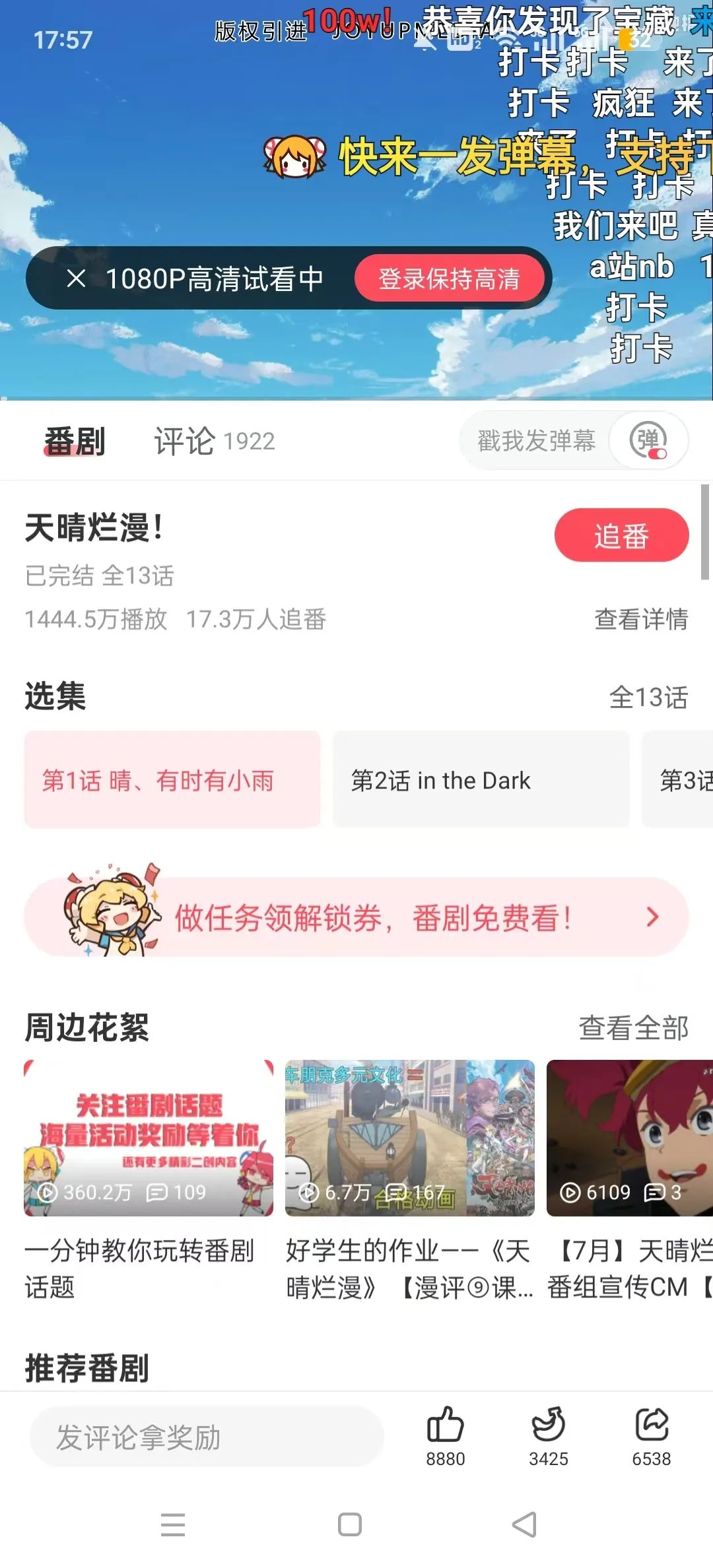 1. 海量视频资源丰富,涵盖动画、游戏、影视、科技、体育等多领域,同步更新热门番剧,还有独家版权作品与原创内容。