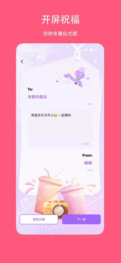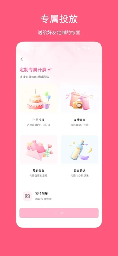 4. 定制独特化:可为欣赏的她定制专属开屏祝福,留下温馨寄语或告白。