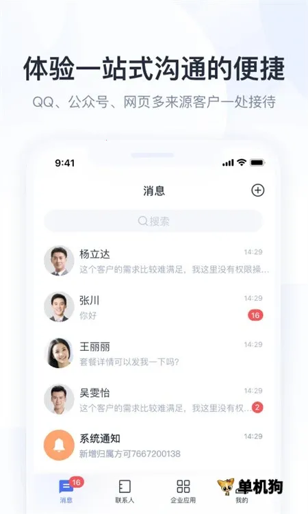 1. 整合企点营销、服务、协同三大模块,带来更方便快捷的管理与通讯,让企业社交及管理更多元。