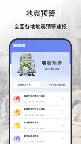 地震报警器2026最新版本是面向手机端用户的实用预警工具,提供安全提醒、丰富知识。信息呈现清晰,场景化提醒贴心,功能丰富,含预警接收、应急清单等,操作简单,适合关注应急准备人群在安卓端免费使用。