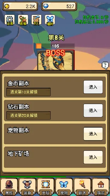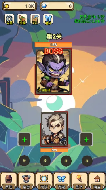 3. 通过战斗赚取金币升级装备技能,让勇者更强以面对更强大敌人。