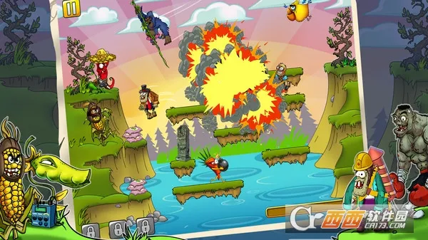 1. 游戏采用萌系反差画风,色彩鲜艳的卡通设计,僵尸造型搞怪讨喜,搭配诙谐音效,消解了题材的暗黑感。