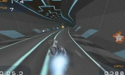 2. 拥有5种各具特色未来飞船,每艘速度操控性和武器配置不同,8个不同赛道背景涵盖多种环境。