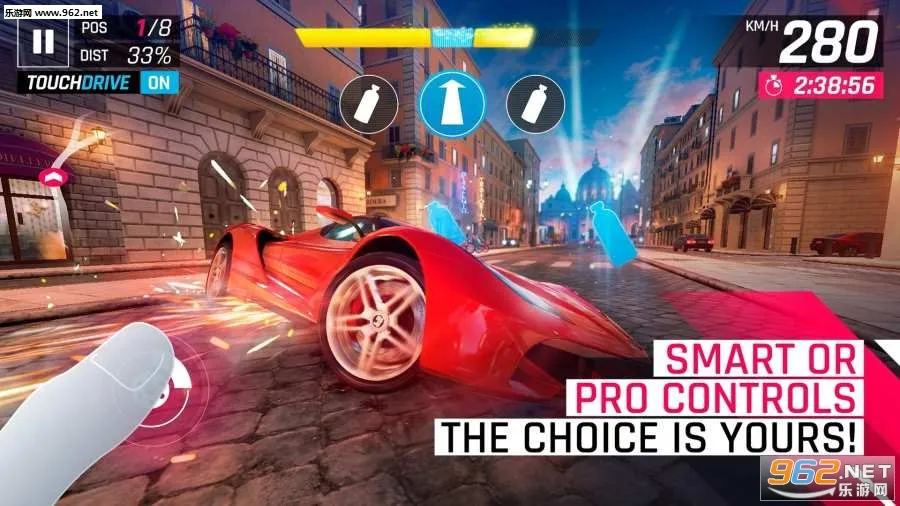 操控随心,切换自如全新TouchDrive操作模式轻松上手,让玩家全身心体验比赛乐趣。还能切换至点击转弯或倾斜转弯,像专业车手般驰骋。