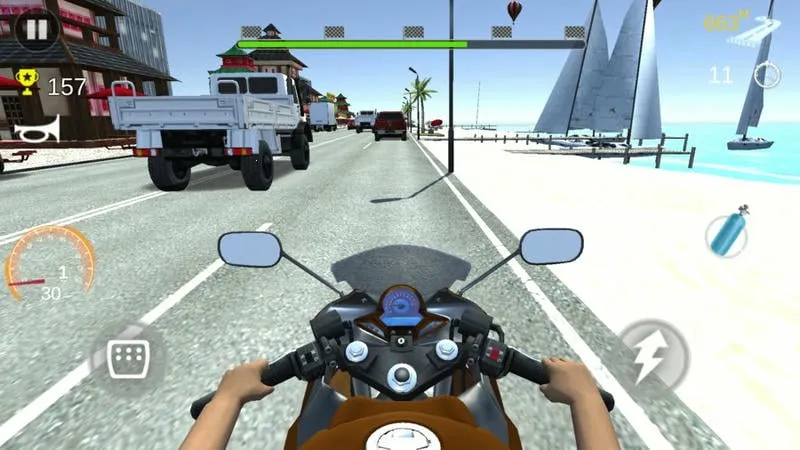 1. 这是一款节奏迅捷充满激情的摩托车游戏,你能驾驶模拟机车以极限速度超越沿途车辆。高速下载,即刻开启刺激体验。