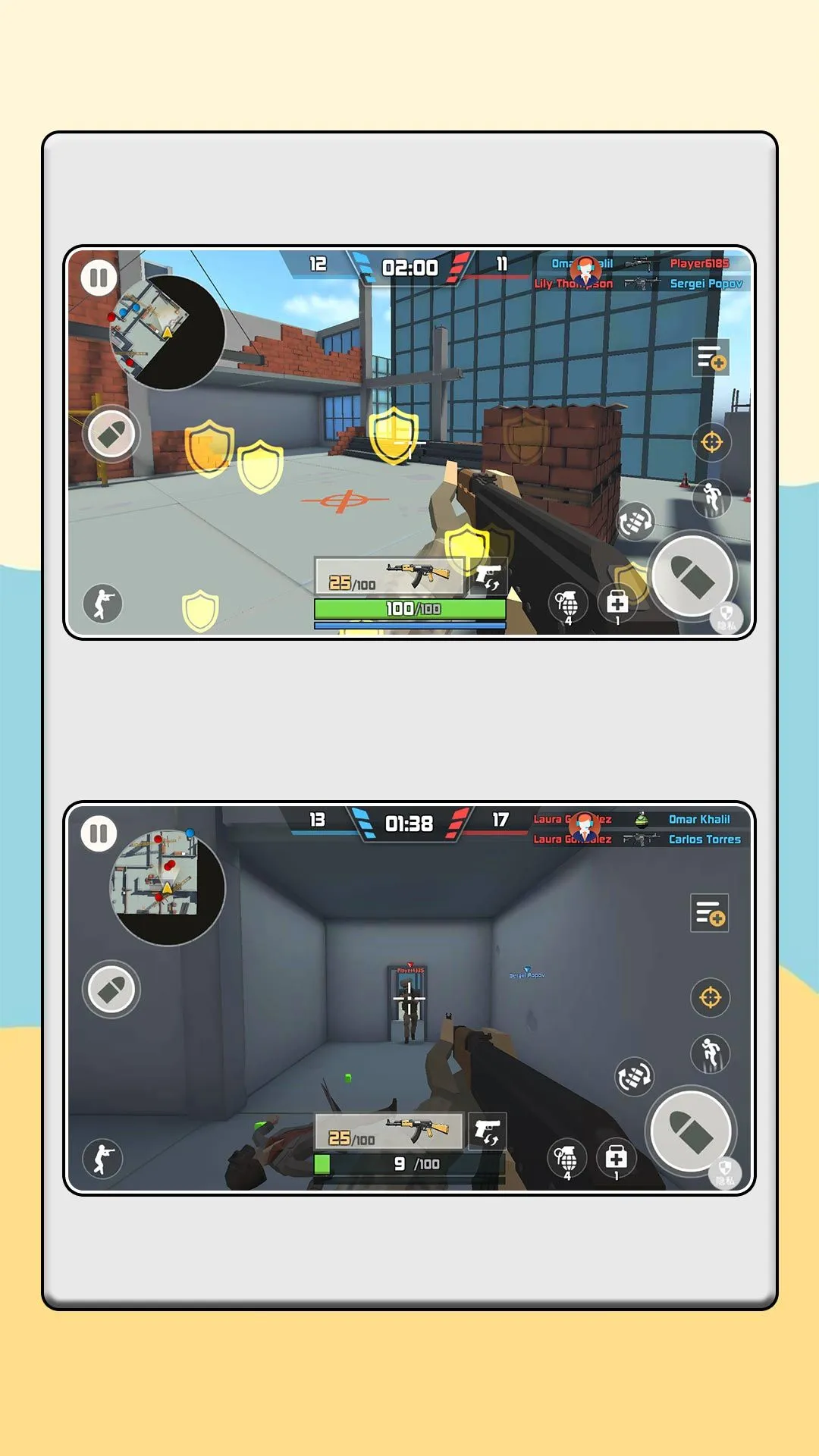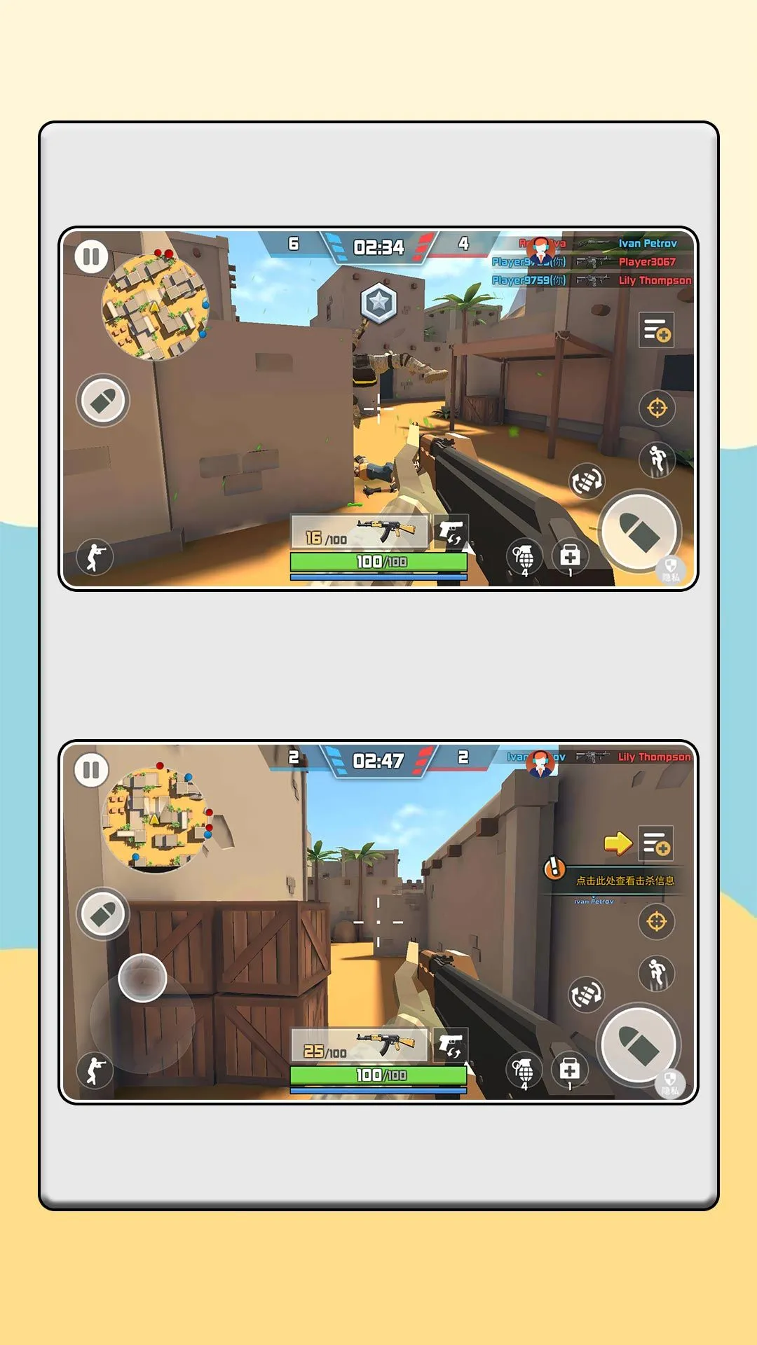 2. 包含屋顶激斗、沙漠城战、废弃工厂等多样地图场景,各地图地形与战术策略设计差异化显著。