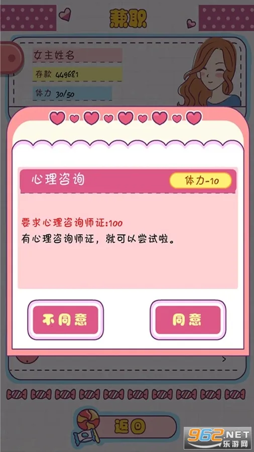 4. 多种玩法逐步解锁,如学习打工投资等提升属性和资产,甜蜜关系自行选择开启推进剧情,约会事件谨慎安排提高好感度。