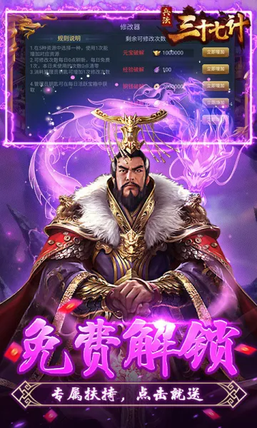 兵法三十七计2026最新版本优势显著。其一,七天登录送诸葛亮这一SSS武将。其二,壕气100抽,创角十日每日十连。其三,首充6元赠SSS暴力输出武将常山赵子龙。其四,每日签到能领海量豪礼,助力玩家畅玩三国策略世界。