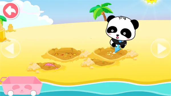 1. 游戏采用可爱卡通形象打造,宝宝扮演小熊猫开启趣味冒险,能在海滩挖掘各种宝藏,充满新奇体验。