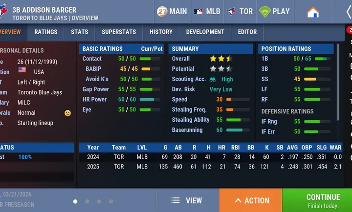 2. 拥有官方MLB和KBO授权,购买游戏可免费获得MLB和KBO球队的完整2026年球员名单,包含完整的MLB和MiLB球员名单。